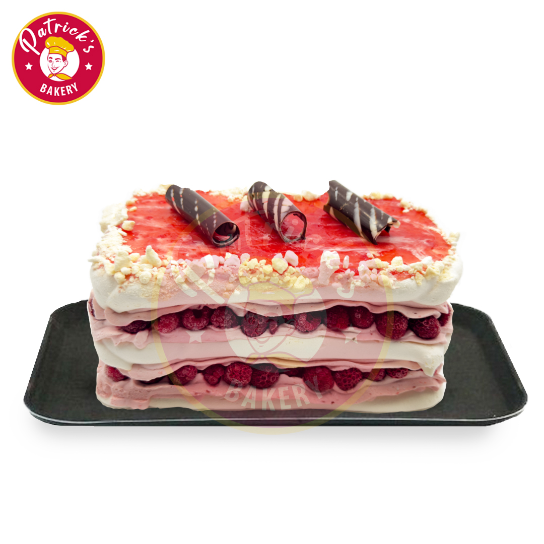 Discos de merengue, relleno con crema chantilly y frambuesas enteras naturales.