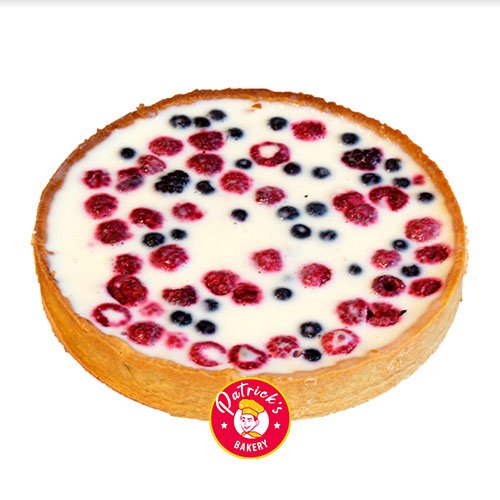 Kuchen relleno con arándanos, frambuesas y moras junto a una mezcla a base de yogurth y leche condensada sobre una base de galleta. Rendimiento 10 porciones.