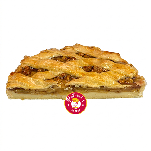 Disfruta nuestro delicioso Kuchen de Manzana artesanal, preparado con masa suave y crujiente, relleno con abundantes láminas de manzana fresca y un toque perfecto de canela que realza su sabor tradicional.