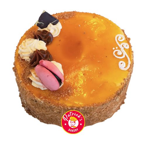 Esponjoso bizcocho de vainilla, relleno con una exiquisita crema de lúcuma, manjar y trocitos de nueces, cubierto con crema de lúcuma.
