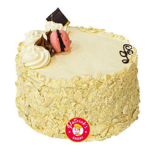 Capas de hojarasca rellenas con manjar y crema de lúcuma, cubierta con crema de lúcuma.