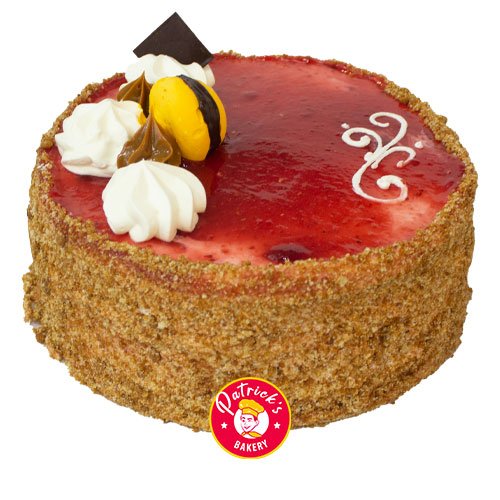 Torta sin azúcar de esponjoso bizcocho de vainilla, relleno con crema chantilly, frambuesa y manjar.